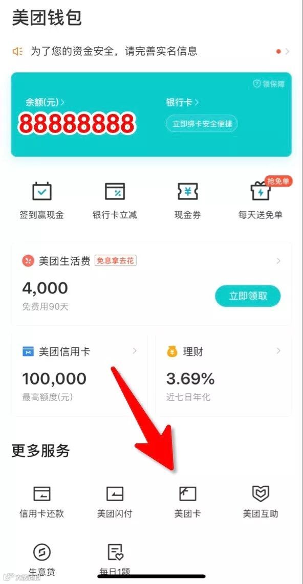 可以在 美团App->我的钱包->更多服务->美团卡 中找到