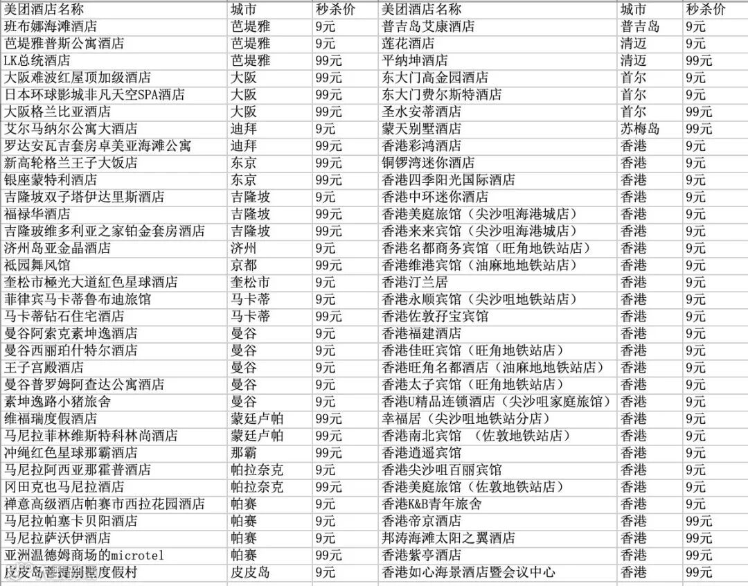 ▼秒杀酒店参考清单