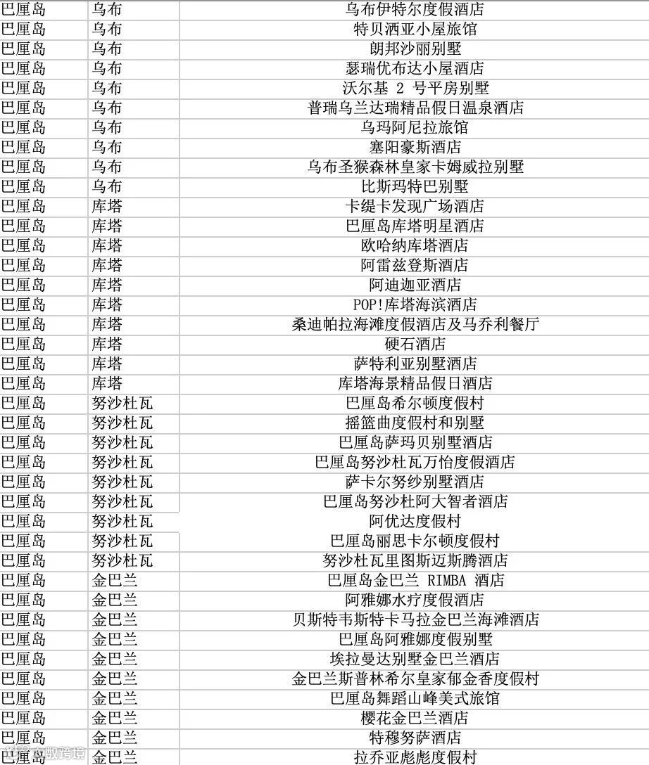 ▼巴厘岛参与3折起酒店参考名单
