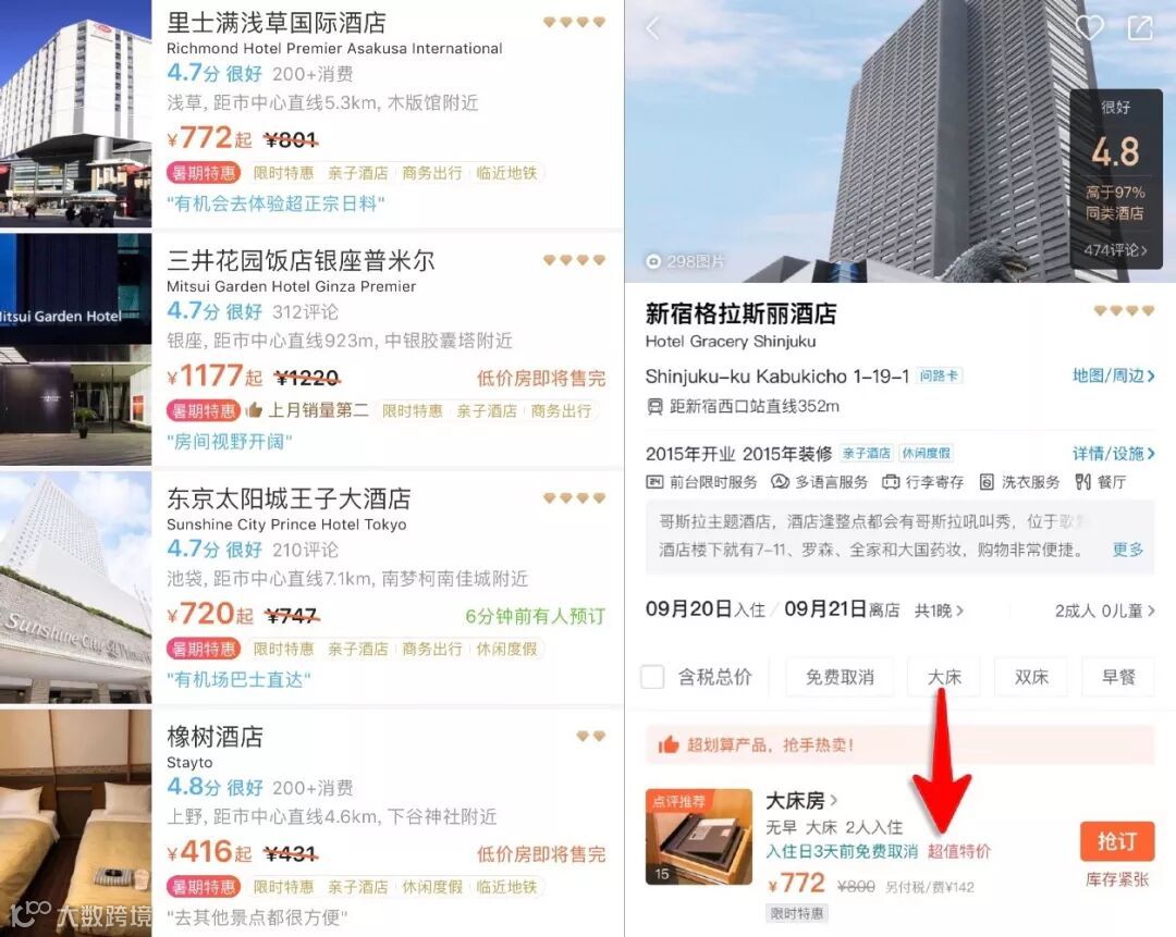 SLH成员酒店(右)不到五百人民币!