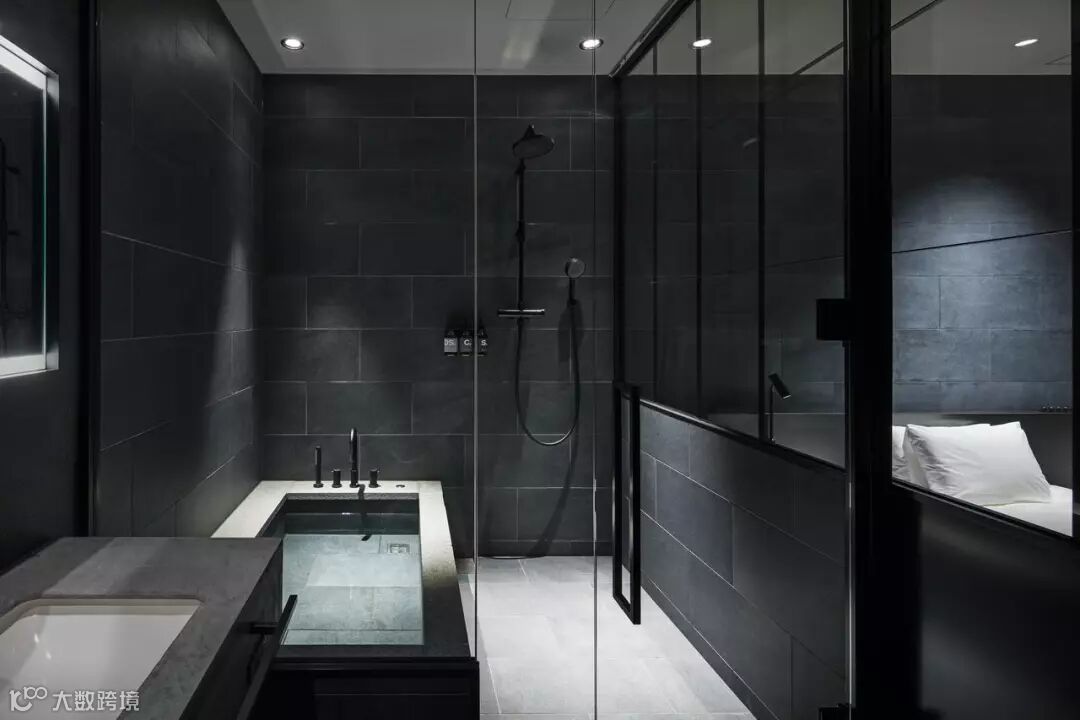 一楼的前台和餐厅是wework即视感。走进客房,是和窗外霓虹灯反差鲜明的极简主义。