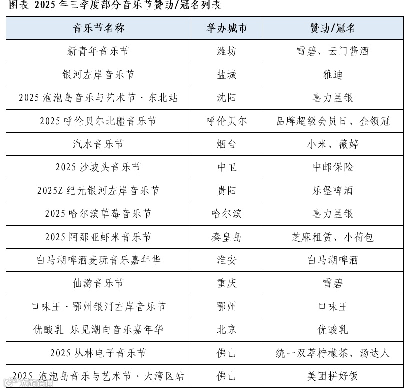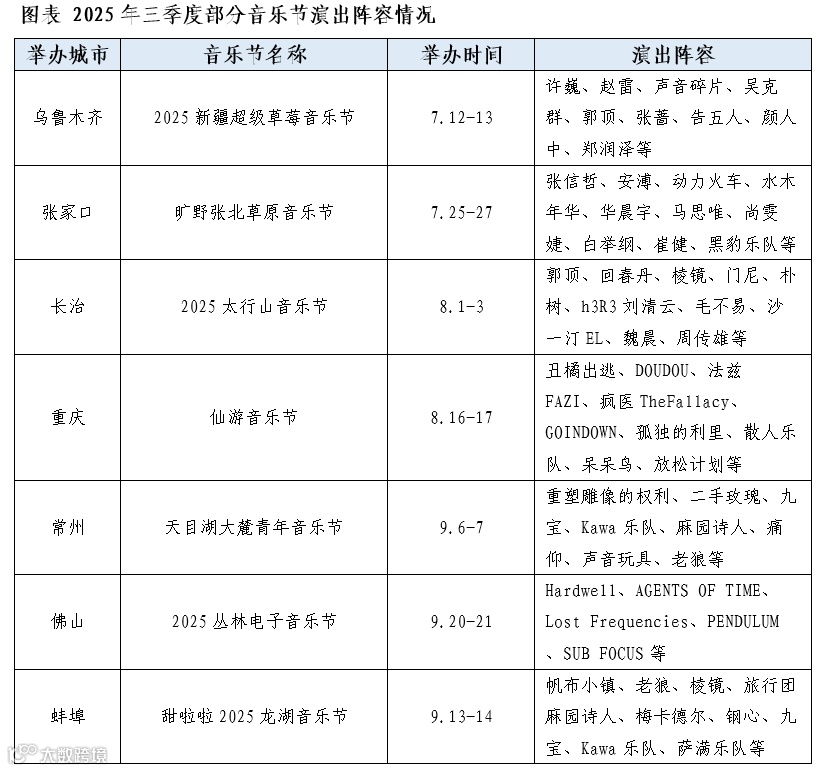 2025年三季度中国音乐节