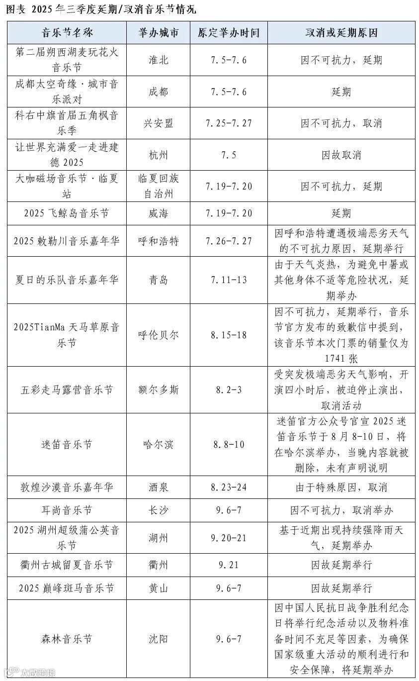 延期/取消:17个音乐节延期/取消。