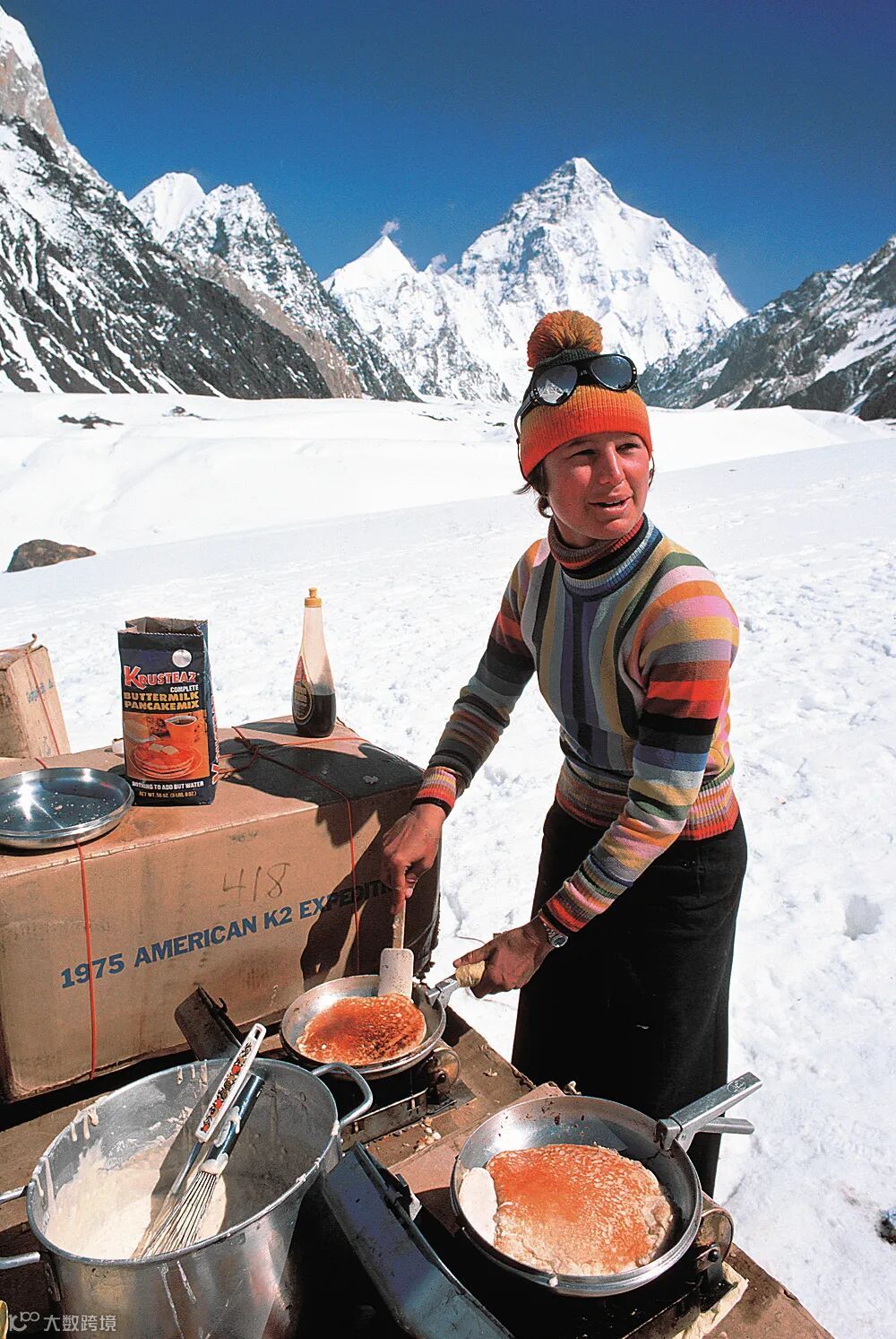 由乔戈里峰“领衔”的4座8000米级高峰组成的主山脊区域,是喀喇昆仑山脉中冰川发育规模最大、分布最为集中的“白色世界”。图中登山队营地背景中菱形高峰即为海拔8611米的乔戈里峰。摄影丨Jan Kvita