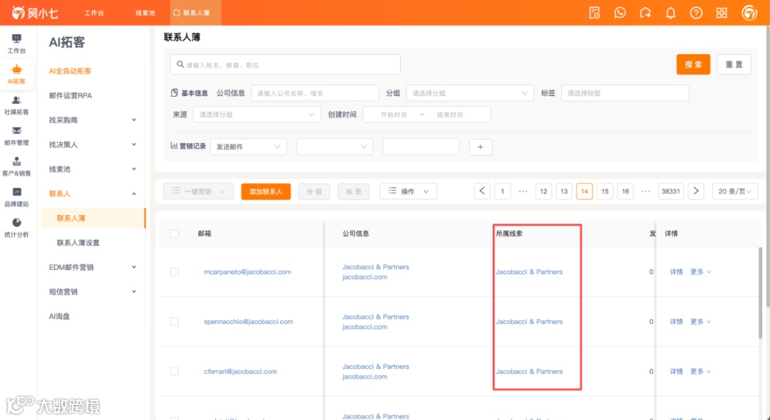10、线索导出使用全新表格格式,补充了是否标记联系人、邮箱状态字段。