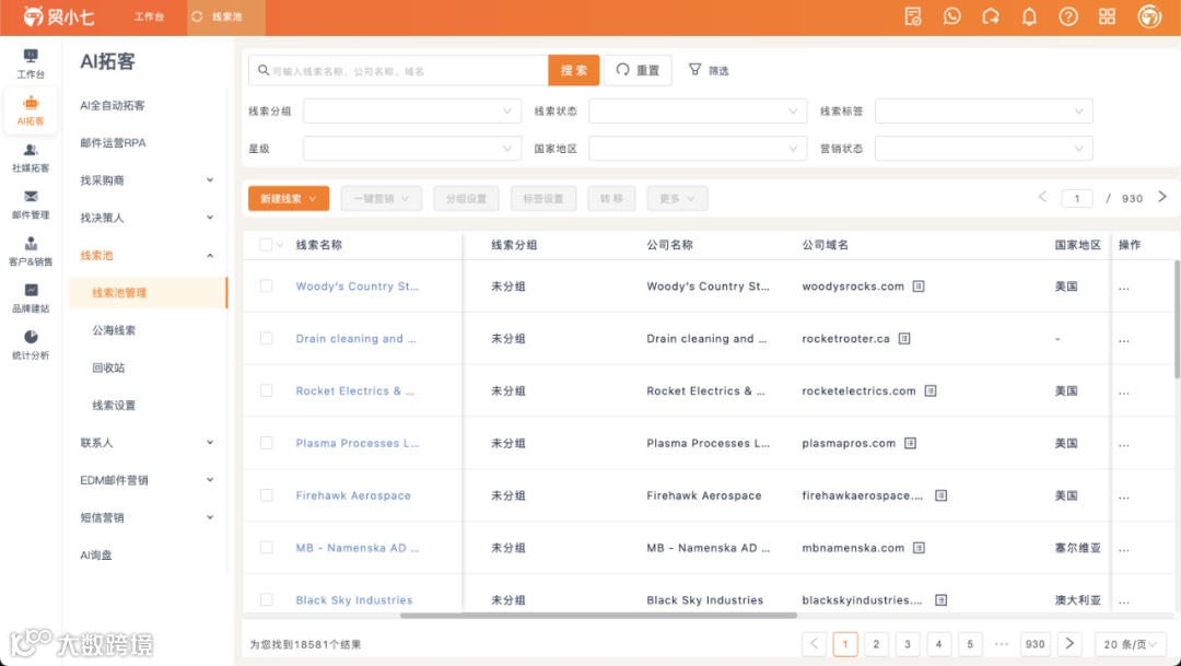 2、列表展示更多的线索信息,支持更多条件的筛选搜索操作;