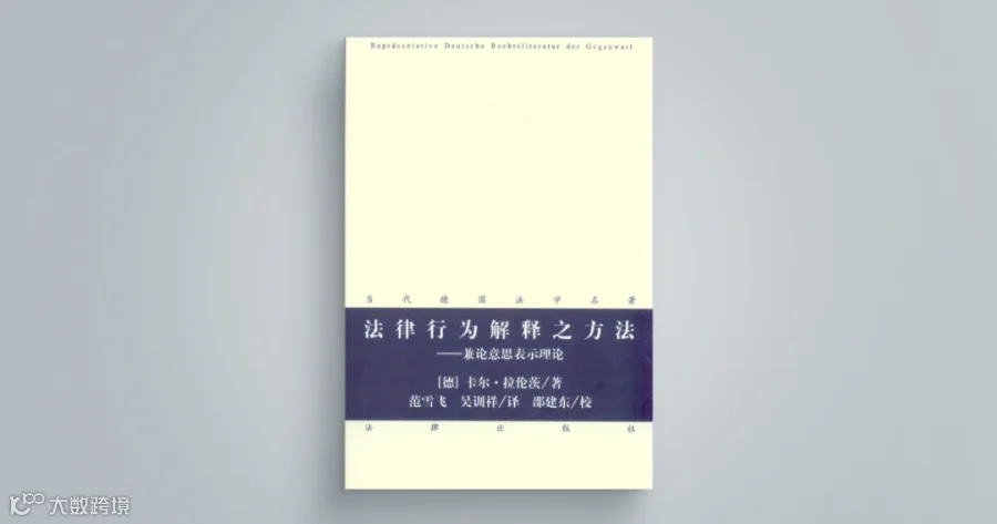 该著作在那个时候尝试进行对上一代两大主流思想的检验:在特别方面,该著作通过判例和学说上的更自由的法律续造,克服了制定法实证主义;在一般方面,该著作一方面全面讨论了从李普斯(Lipps)到伽达默尔(Gadamer)新德国哲学中的诠释学问题,另一方面也全面讨论了盎格鲁撒克逊—斯堪的纳维亚新实证主义中的语义学。由于拉伦茨教授仍然受到他那个时代缓和的实证主义的束缚,他在导论中,首先从『德国民法典』第133条和第157条这两个「自身也需要解释」的规范出发展开研究。但是,拉伦茨教授没有再用实证主义而是用「一种扬弃了主客观解释方法二元论的全面思想」去完成这一任务,试图使这两个规范在体系上形成不相互矛盾的关系。