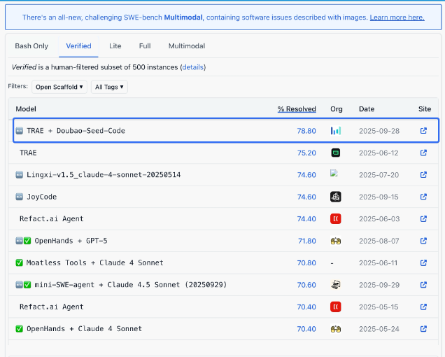从我这次完整实测来看,Doubao-Seed-Code 在 SWE-Bench-Verified 上拿到第一名,确实不是偶然,强化学习 + 端到端训练让它在真实编码场景中输出稳定、逻辑连贯,生成的代码基本都能直接运行。