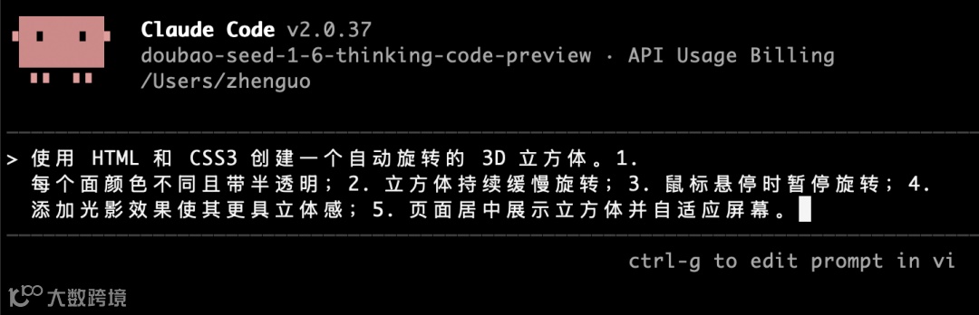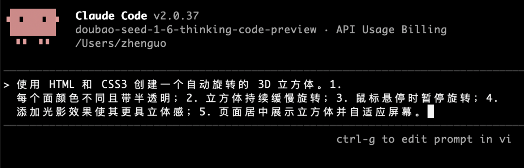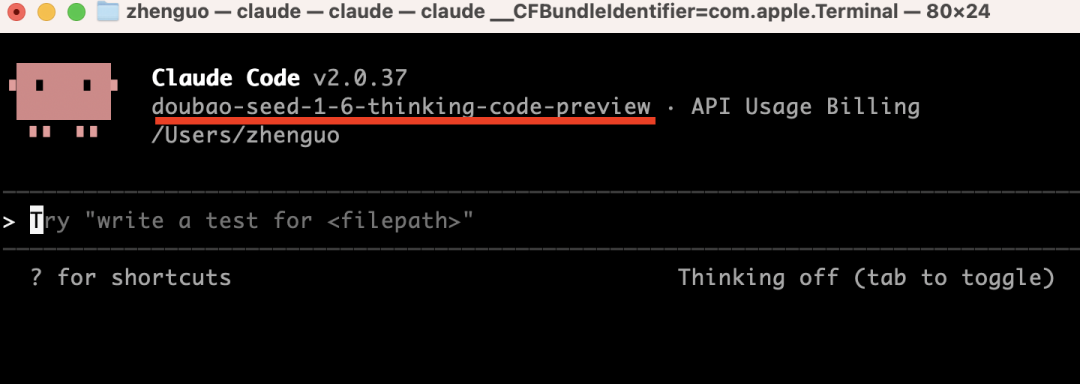 export ANTHROPIC_API_KEY=你的API KEYexport ANTHROPIC_BASE_URL=https://ark.cn-beijing.volces.com/api/v3/chat/completionsexport ANTHROPIC_MODEL=doubao-seed-1-6-thinking-code-preview