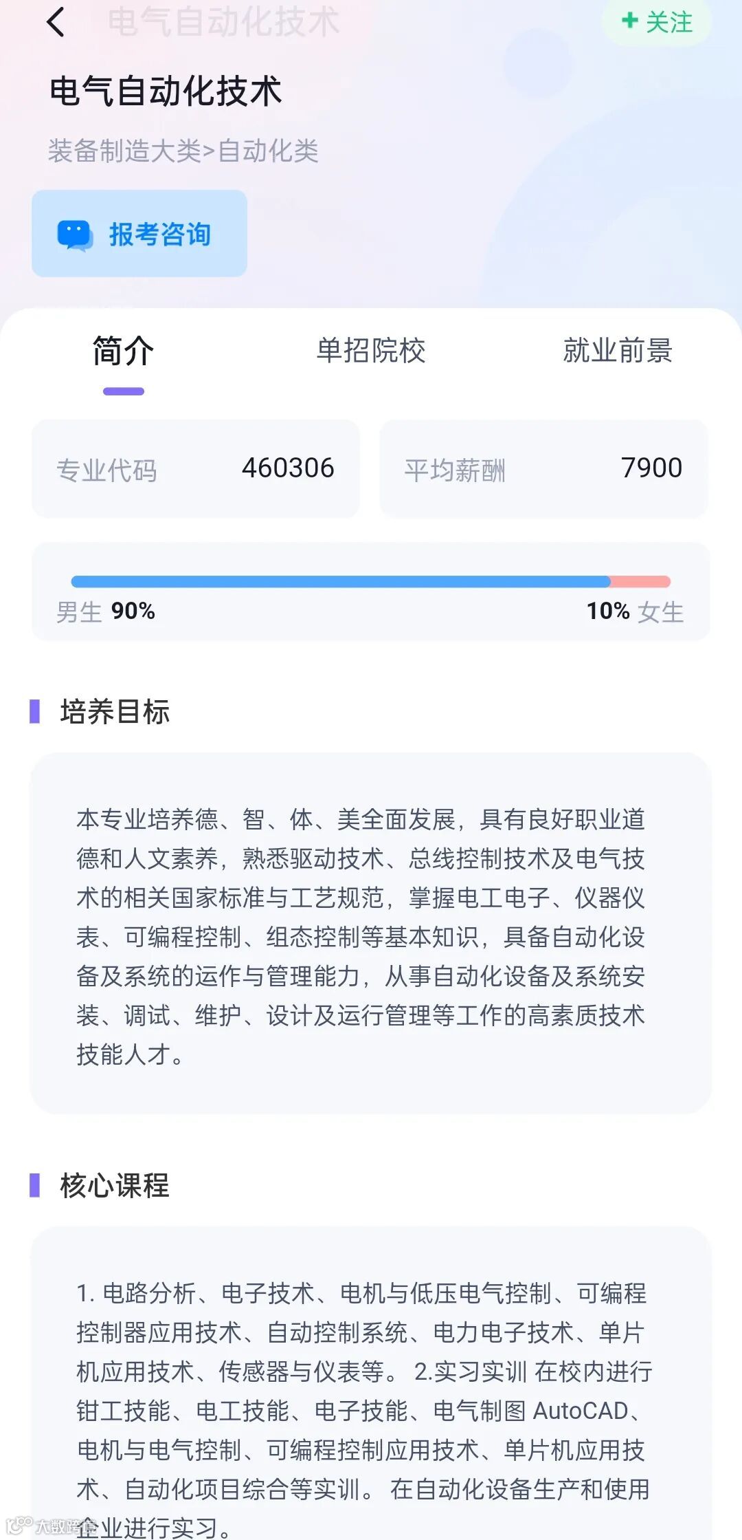 可查看该专业,详细核心课程、就业方向、所需职业能力