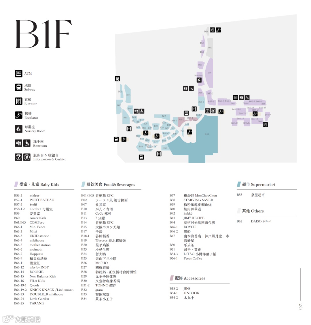 以泉屋超市为核心,划分餐饮与儿童区。餐饮主打日式轻食与甜品,引入がんこ寿司、千房、ラーメン凪 纳吉拉面、LeTAO、布歌东京、神戸風月堂等首店,以及Peet's Coffee、乐乐茶、7分甜等网红茶饮品牌。[[k]]