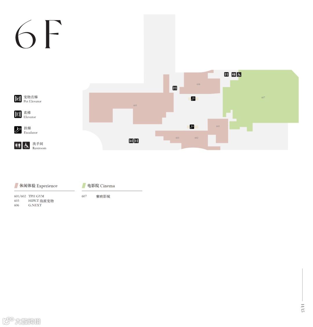 六楼以屋顶花园为特色,商业布局集中于北区,包含高端室内高尔夫G.NEXT、HIPET海派宠物、TPH GYM健身馆及浙江省首家配备PRIME厅的寰映影城[[k]]。