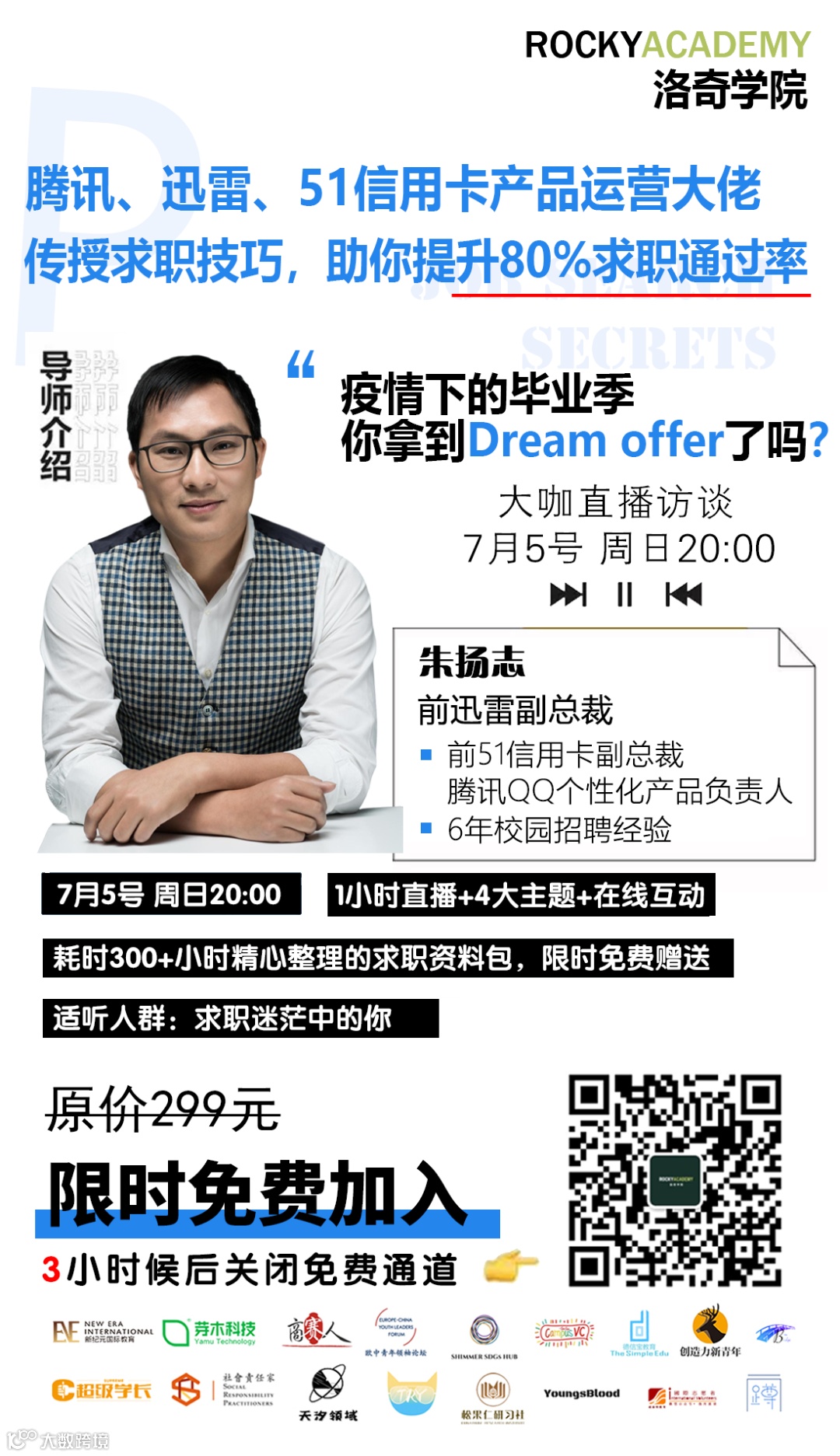这次,Rocky Academy邀请到现任OPPO用户增值团队负责人朱扬志,进行首次独家人物访谈,将于7月5号在直播间与大家见面!