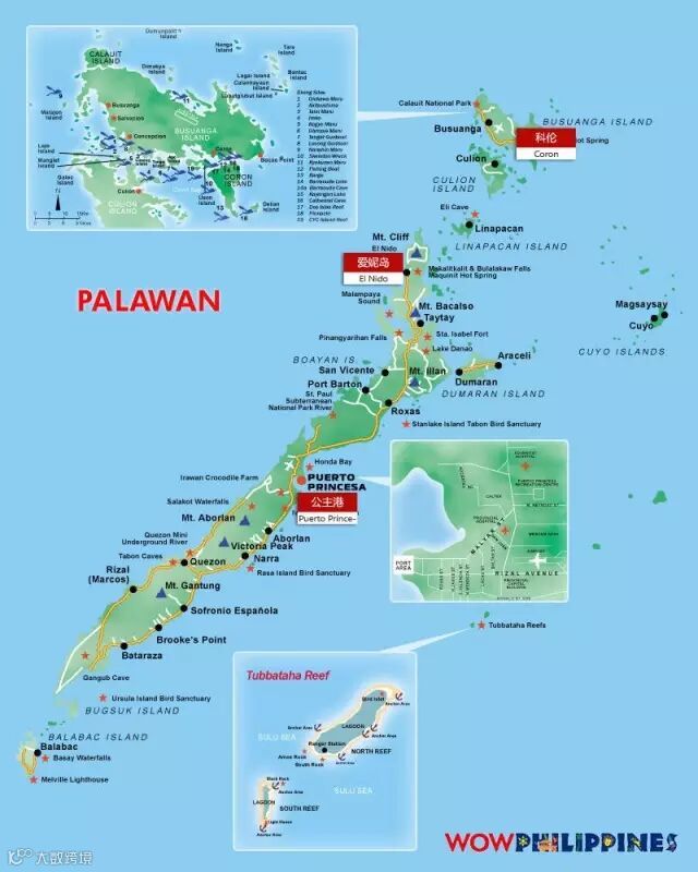巴拉望最主要的游玩区域有三块:公主港、爱妮岛和科伦。喜欢潜水的可以选择科伦,偏好休闲度假的可以选择爱妮岛,公主港是巴拉望的交通枢纽,一般会和爱妮岛一起游玩。