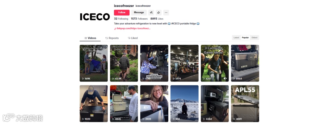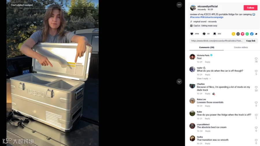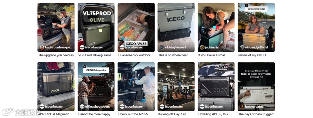 在TikTok上,英得尔ICECO与多位户外、科技领域的达人进行合作,以短平快的内容呈现冰箱在露营、越野等场景中的真实体验,快速拉近与用户的距离。
