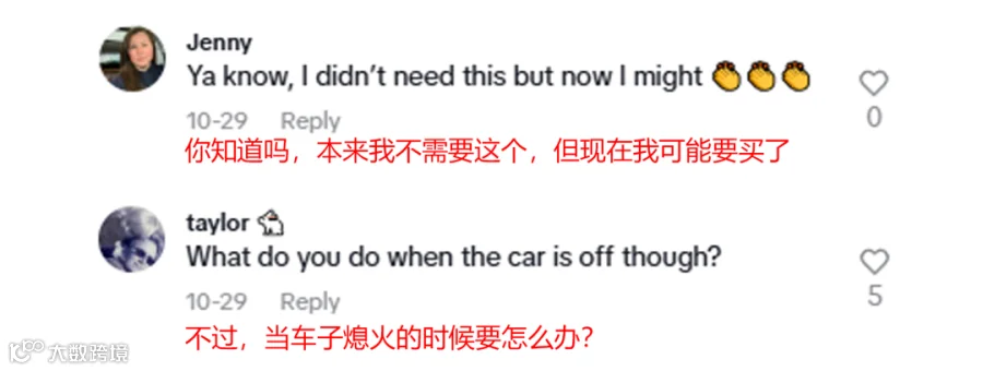评论区中引来不少潜在用户询问产品细节和被种草评论,从“车子熄火如何供电?”的实用提问,到“我本来不需要这个,但看完之后想要”的真香反转。