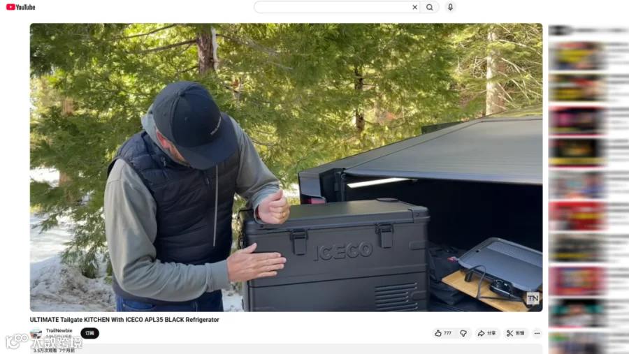 视频以打造Cybertruck车载厨房为主题,结合特斯拉皮卡与露营实测,展示了利用ICECO APL 35双区车载冰箱等设备完成移动厨房搭建,TrailNewbie将冰箱与露营场景的结合,详细演示冰箱的制冷效果、双区控温、照明与手机 App 控制等功能,还现场使用冰箱取食材制作早餐卷饼,画面自然真实、生活感强。