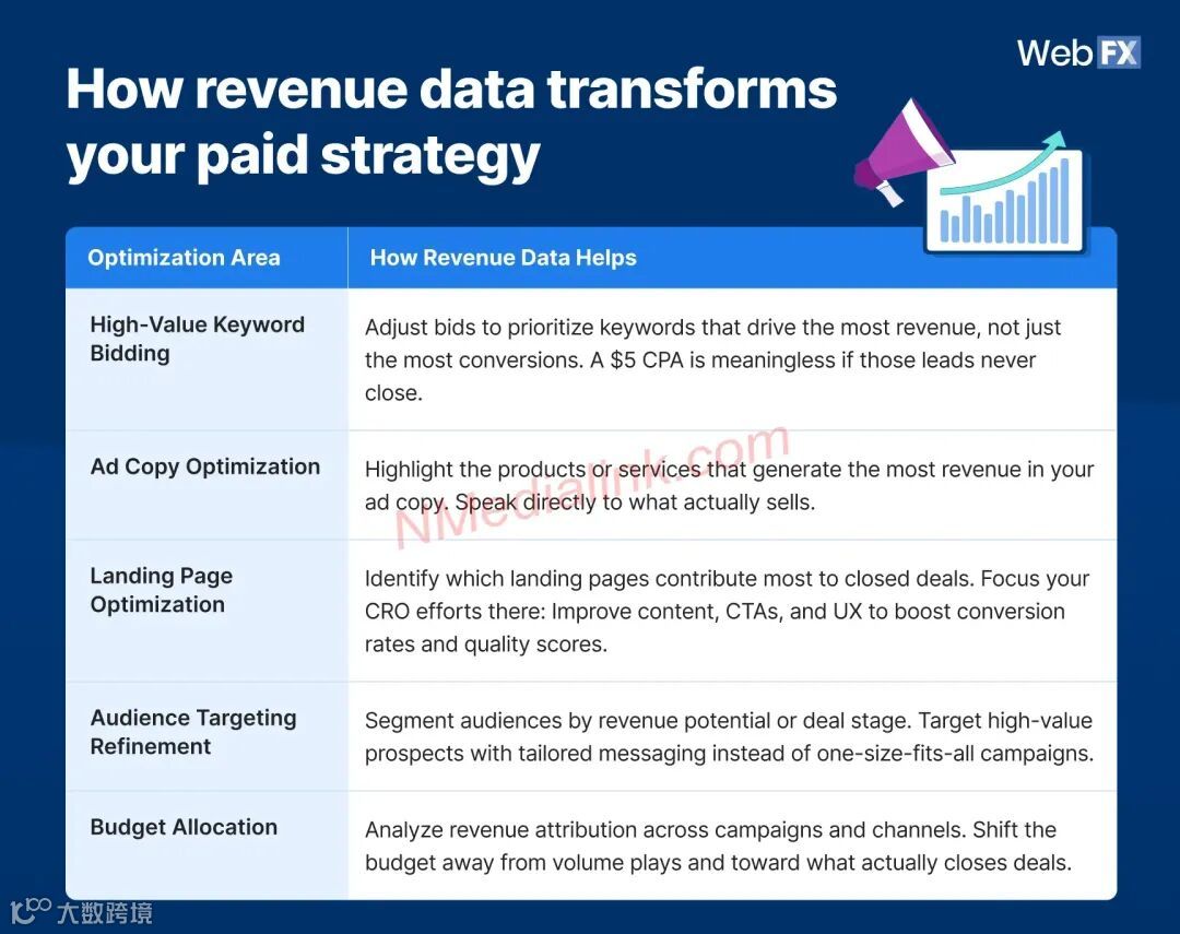 不仅仅是与潜在客户关联。根据营收潜力而非搜索量来优化和出价。 - 识别高价值内容: