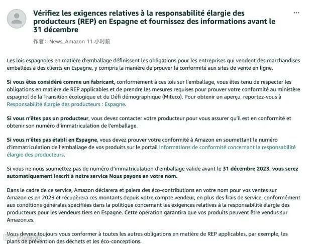另外,亚马逊欧洲站近日更新了一则合规公告,要求卖家要自检并遵守西班牙包装法的规定。