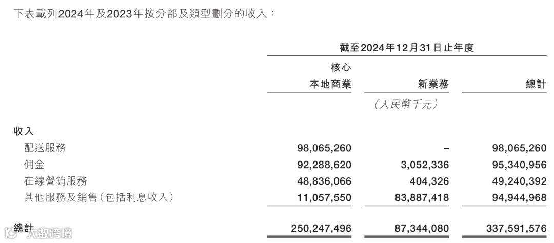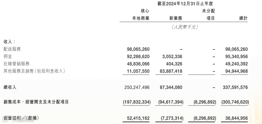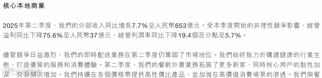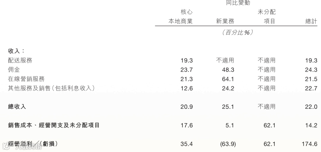•配送服务本身处于微亏状态,但通过佣金(28.2%)和在线营销(14.6%)收入实现整体盈利。例如,2024年核心本地商业经营利润率20.9%。