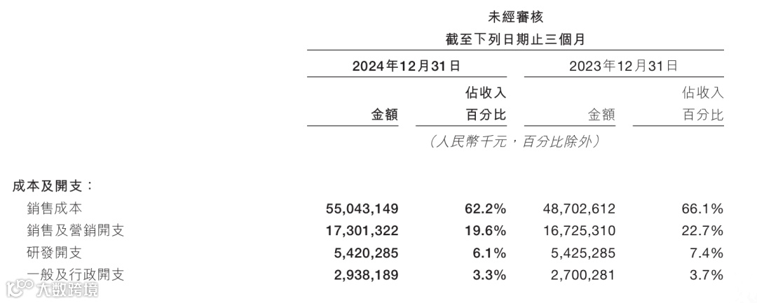 销售成本金額的增加主要由於我們的即時配送業務及食雜零售業務的銷售成本增加。銷售及營銷開支由於隨著業務規 模的進一步擴大,推廣、廣告開支和用戶激勵及僱員薪酬開支有所增加。
