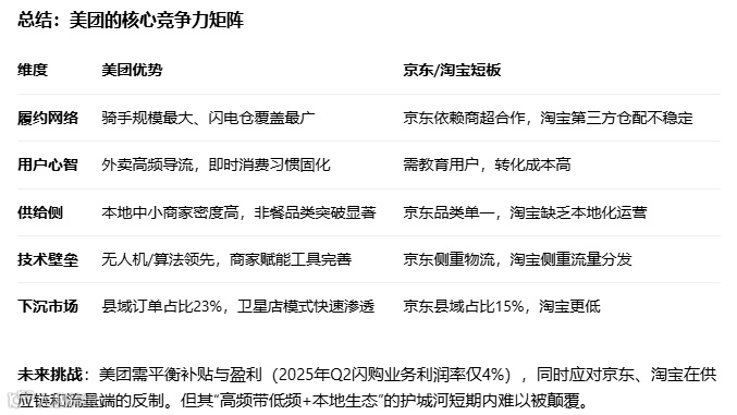 长期:依赖佣金和广告收入盈利,同时通过高频配送订单提升用户粘性,反哺即时零售(如闪购)等高利润业务。