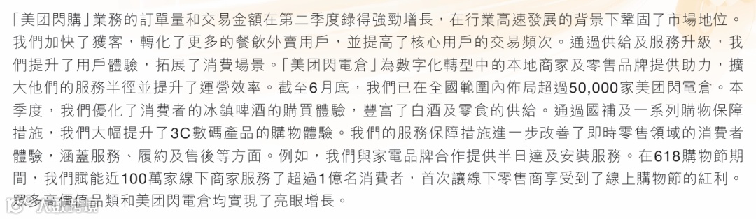 1.食杂零售:包括美团优选、小象超市等,优化运营效率,成为增长主力。