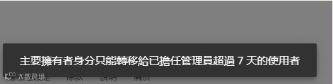 系统限制主要拥有者身份只能转移给已担任管理员超过7天的用户,不足7天将提示“请耐心等候”,不可跳过该冷却期[k]。