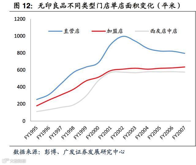 但早期良好的市场反馈使得管理层过于乐观,产品开发能力难以与激进的门店扩张战略相匹配:以无印良品主推的直营店为例,FY1995-FY2000,无印良品直营店平均单店面积扩大近4倍至996平米,但总商品SKU数仅扩大1.9倍至5159种,对应门店每平米平均SKU数由10.7个大幅下降至5.2个。