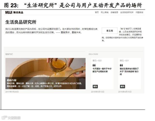 但从定位来看,无印良品并未将电商作为其主要销售渠道(FY2011-FY2015,无印良品线上销售占比仅为5%左右),而是作为线下门店导流(例如发放线下门店优惠券&门店地址查询等)、用户交流服务和意见反馈和收集渠道,进而实现从用户需求角度出发,颠覆传统商品开发模式:通过官网“创造交流”栏目(现已更名为“无印良品生活研究所”),收集用户需求痛点和产品开发建议。