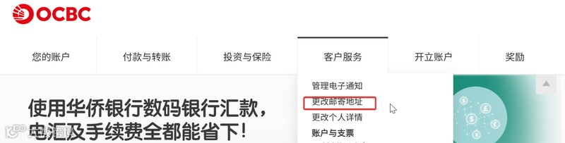 修改您的OCBC邮寄地址