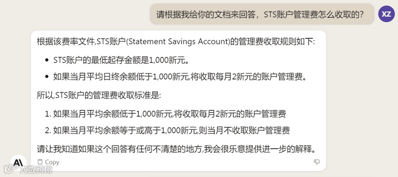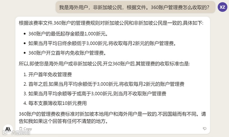 我从OCBC官网下载了一份费用说明的PDF文件,然后让Claude帮我解读,得到的答复如下: