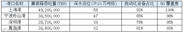 表:2025年中国主要港口基础设施指标对比