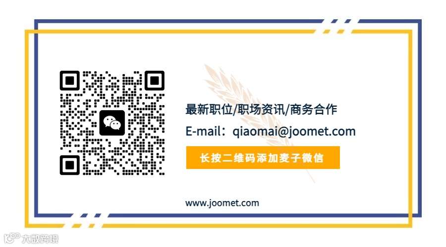 本期为您推送8个海外热招职位,您可通过邮箱联系咨询顾问,或页面下方的二维码添加麦子进一步了解。