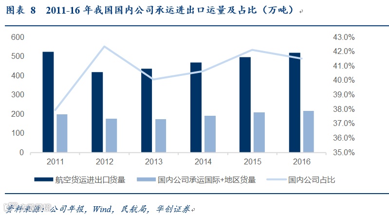 我国国际空运市场中,预计外航(如FedEx,UPS,DHL等国际巨头)货邮运输量占比过半。