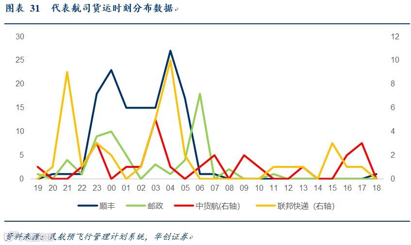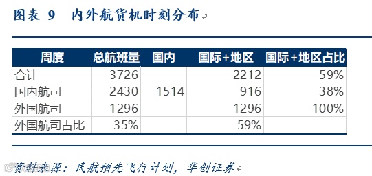 而全部国际线的中货航和联邦快递与非夜间时刻基本占比约一半。
