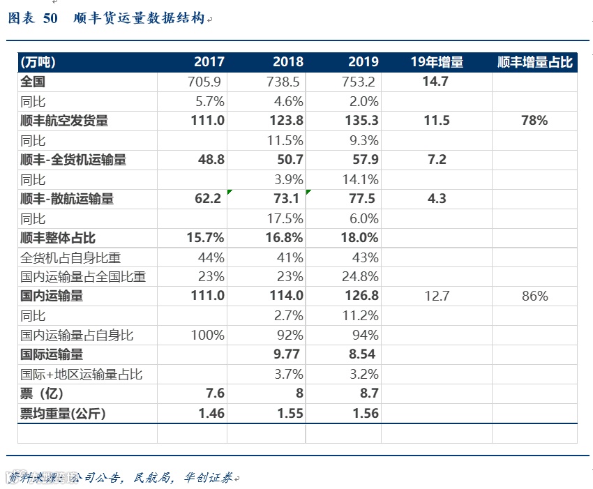 1.顺丰是国内最大自有航空运力持有者,亦是最大空运货主
