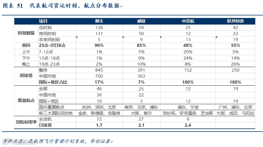 1.顺丰航空:136对时刻,其中夜间时刻占比96%,深圳、杭州为国内基地,印度为国际线重要目的地
