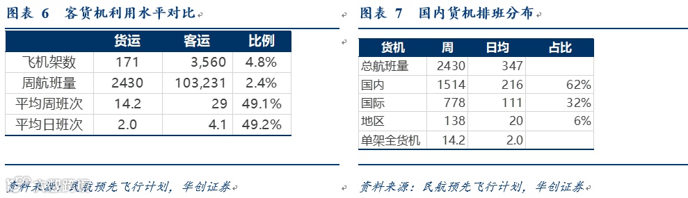 2.时刻表看飞机利用率,我国航空市场“客强货弱”。