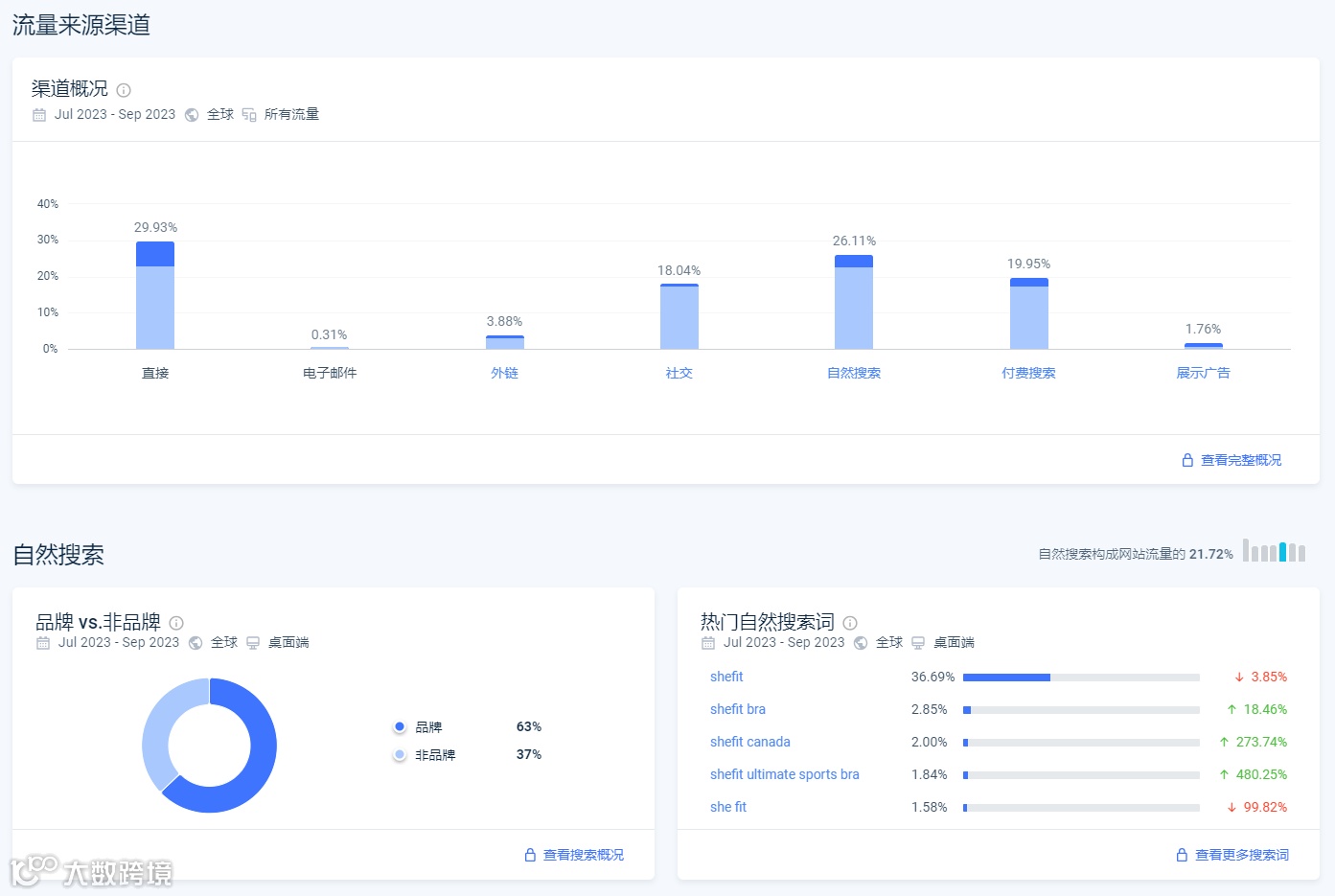 近百分30的直接流量和大量的品牌关键字搜索流量,这是一个非常成熟的品牌。