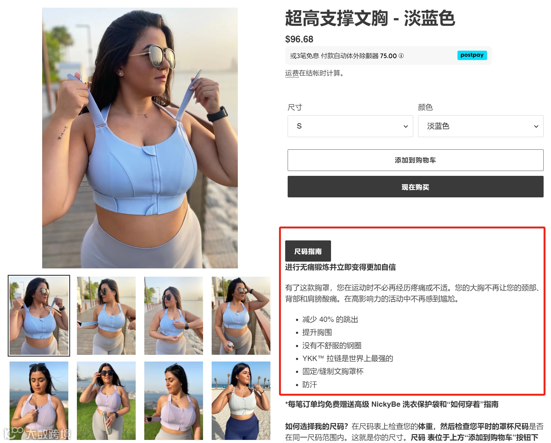 而英国小卖家的策略非常清晰,将产品的客户群体定位于大胸女生。核心卖点和角度都是基于这个群体最关心的问题,运动中胸部的不舒适感。