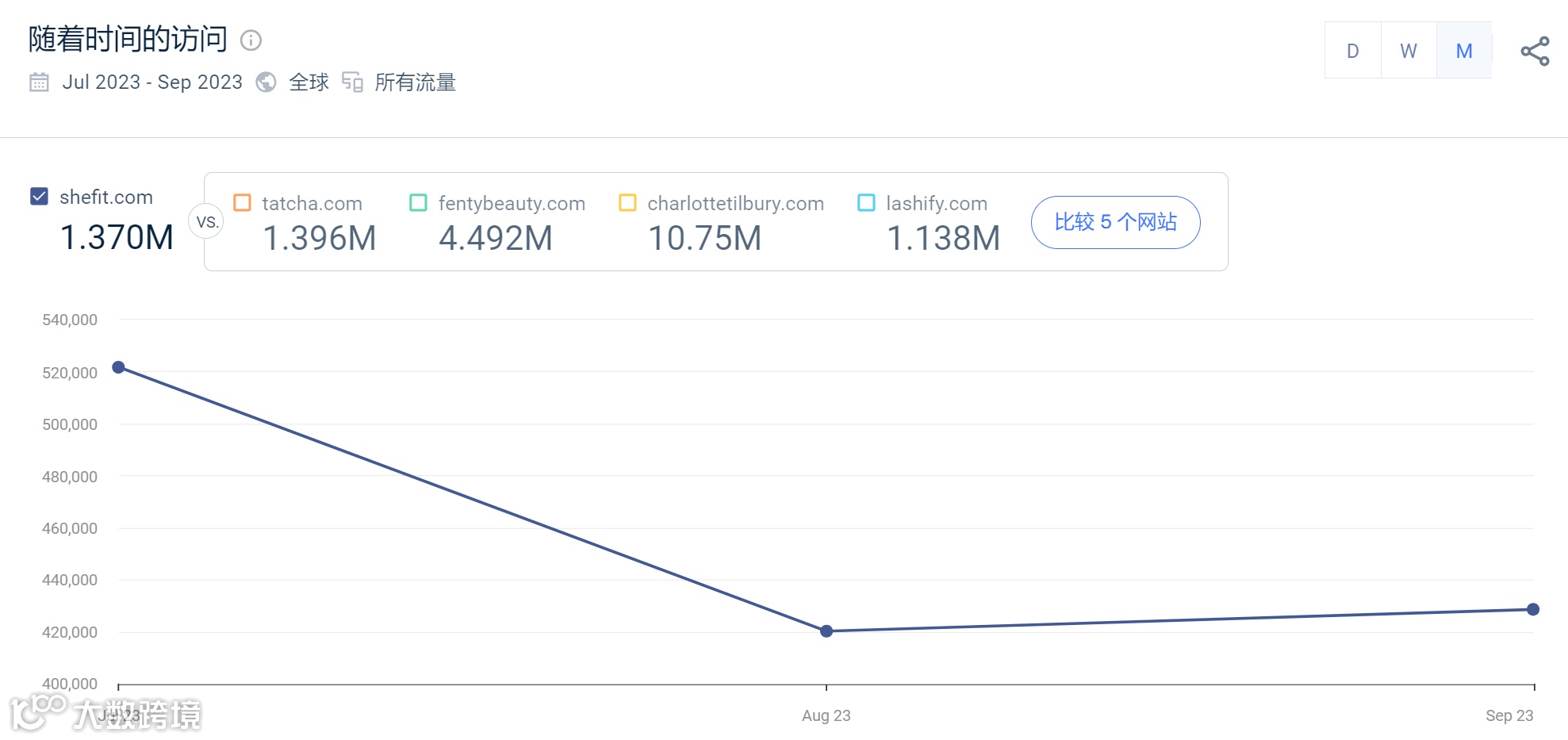 这个品牌不算头部大牌,但是每月也有40万到50万访客。