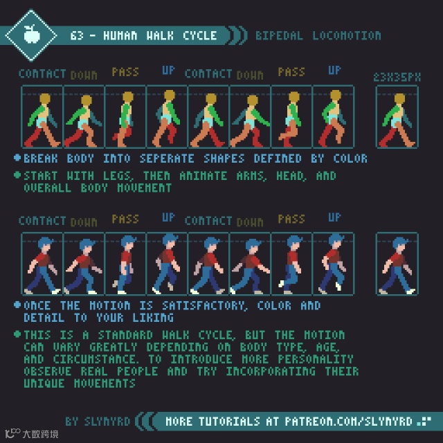 5. 像素画教程:人类行走动画拆解(Twi/X: rayslynyrd)