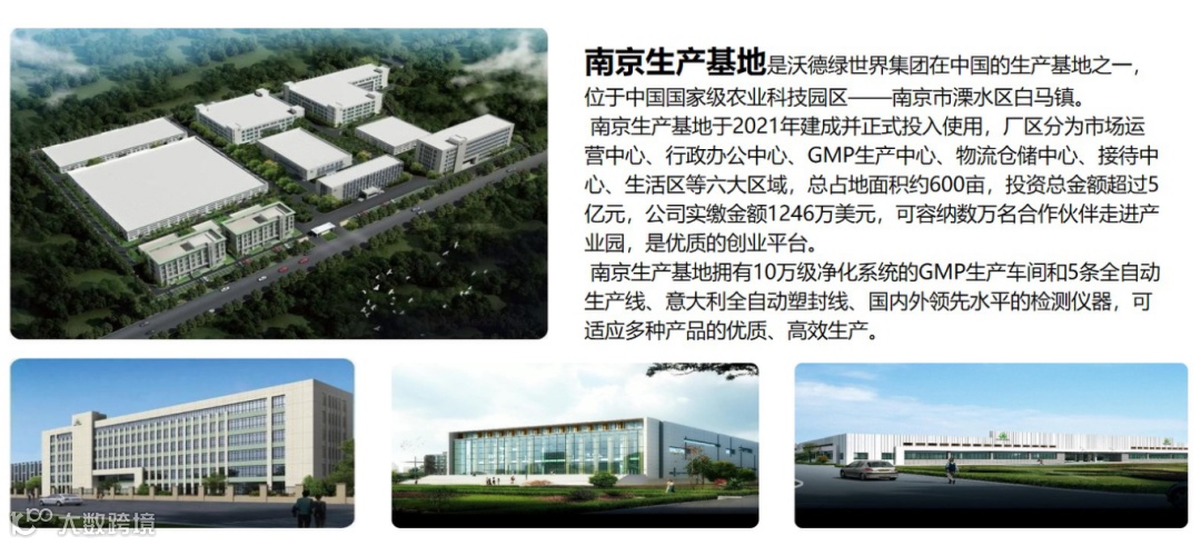 南京生产基地位于中国国家级农业科技园区——南京市溧水区白马镇。厂区于2020年正式落成,分为市场运营中心、行政办公中心、GMP生产中心、物流仓储中心、接待中心、生活区等六大区域,总占地面积约600亩,可接待数万名合作伙伴走进沃德健康产业园参观旅游,是优质的创业平台。