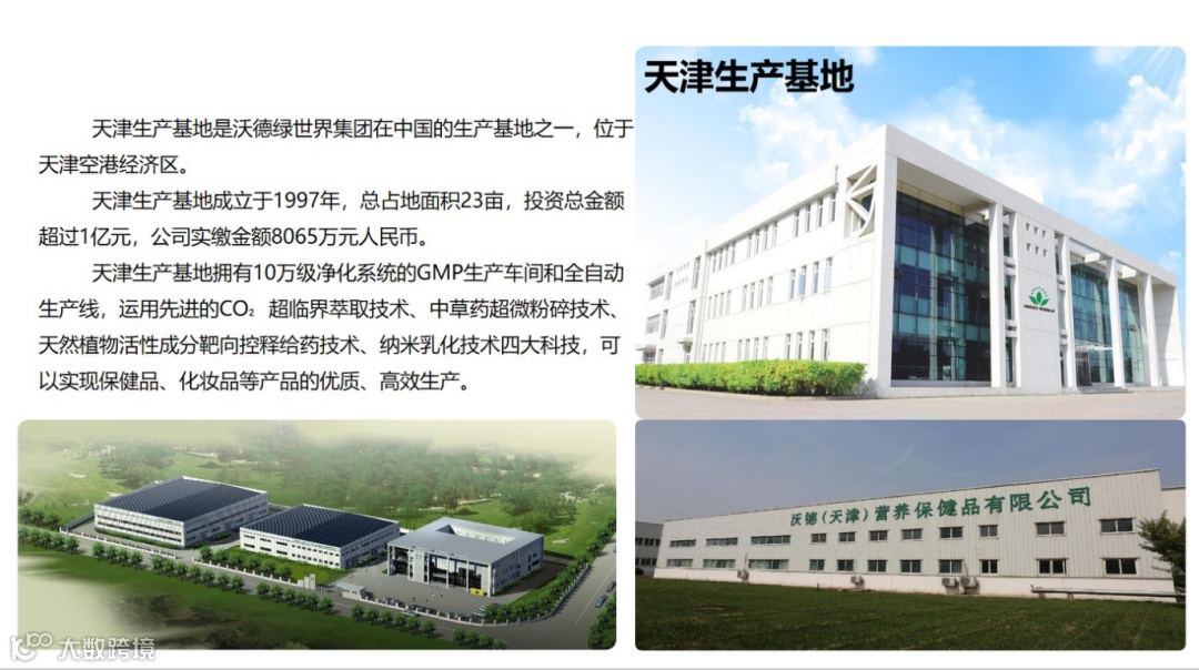天津生产基地拥有十万级净化系统的GMP生产车间和全自动生产线,拥有先进的CO₂超临界萃取技术、中草药超微粉碎技术、天然植物活性成分靶向缓释给药技术、纳米乳化技术四大科技,可以实现保健品、营养品、化妆品等产品的优质高效生产。