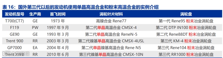 同时,单晶材料没有晶界,在高温应力下不易发生蠕变和疲劳断裂。粉末高温合金采用粉末冶金工艺,具有成分均匀,抗疲劳,热加工性能好等特点。由于单晶铸造高温合金和粉末高温合金优异的性能,国外第三代以后的发动机几乎无一例外使用了单晶涡轮叶片和粉末冶金涡轮盘。