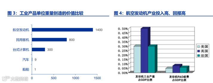 航空发动机价值回报高,经济辐射带动作用强。航空发动机作是工业部门目前附加值最高的高端制造业,对上下游产业也有着巨大的辐射带动作用。