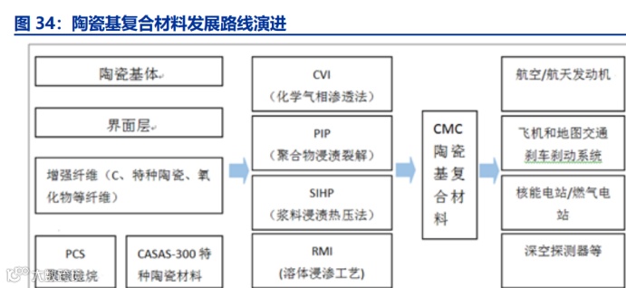 航空发动机原材料以高温合金和钛合金为主,二者成本约占原材料的 65%,占发动机的 33%。除高温合金和钛合金材料外,新兴的陶瓷基复合材料正逐步扩大在原材料中的占比份额,成为航空发动机中的新型材料。
