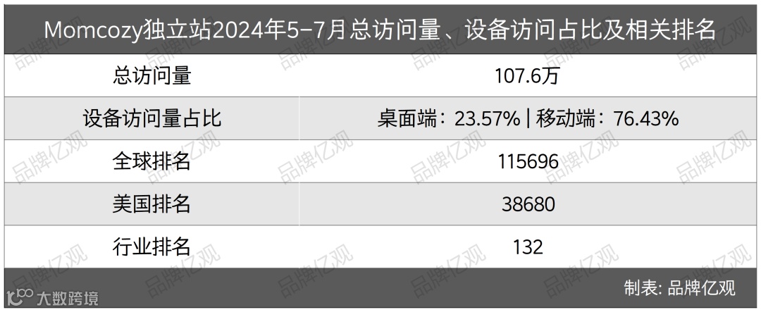 2025年5月至7月,Momcozy独立站访问量达107.6万次,移动端占比76.43%,用户以25-34岁为核心育儿群体为主,女性用户占55.06%,男性用户达44.94%,反映父亲育儿参与度提升趋势[k]