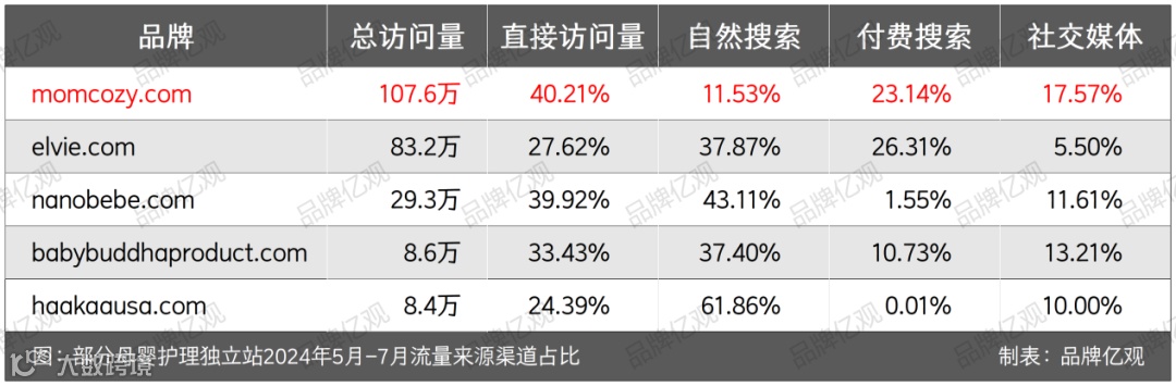 此外,Momcozy布局YouTube、Pinterest等平台,拓展内容矩阵,整体社交流量贡献占比17.57%,形成以社交驱动增长的品牌传播模式[k]